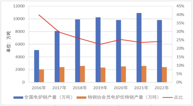 圖2 近年我國電爐鋼產量與優特鋼產量