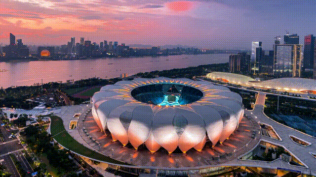 在杭州亞運會、亞殘運會比賽場館中,別名“大蓮花”的杭州亞運會主體育場——杭州奧體中心體育場,作為開、閉幕式的舉辦場地和田徑項目的比賽場地,以極具杭州特色的造型,成為錢塘江畔的一道靚麗風景。