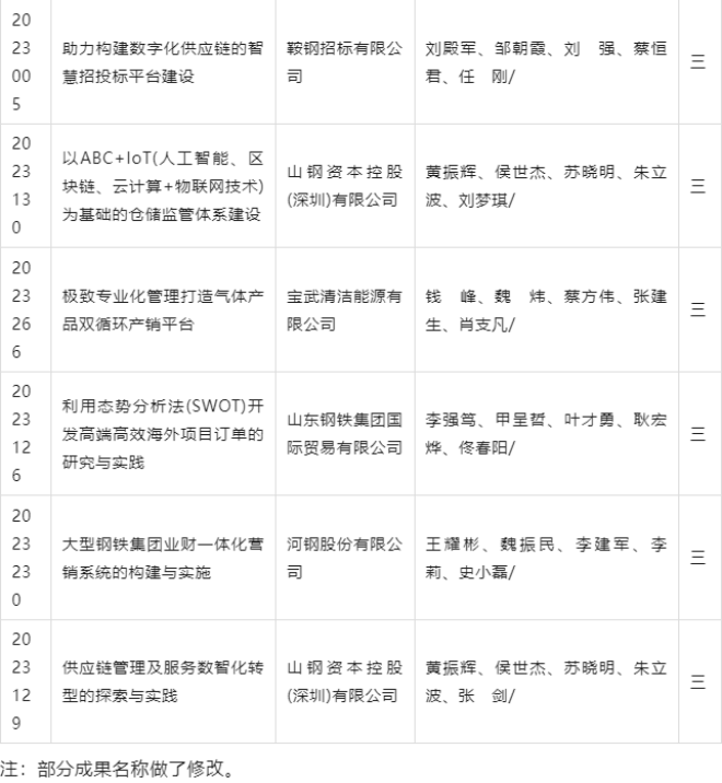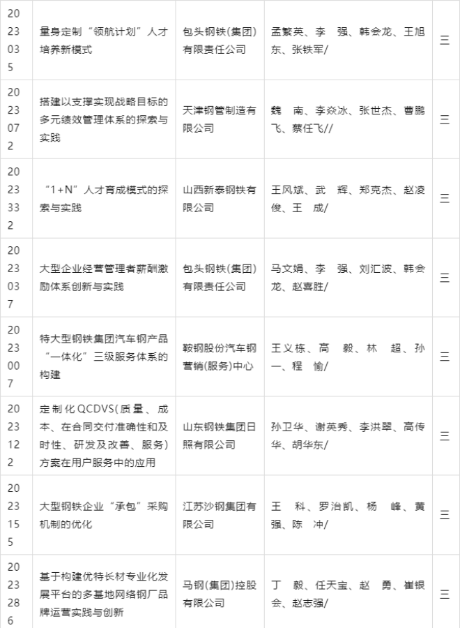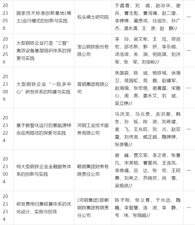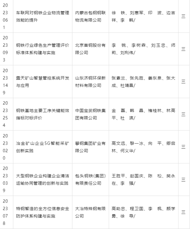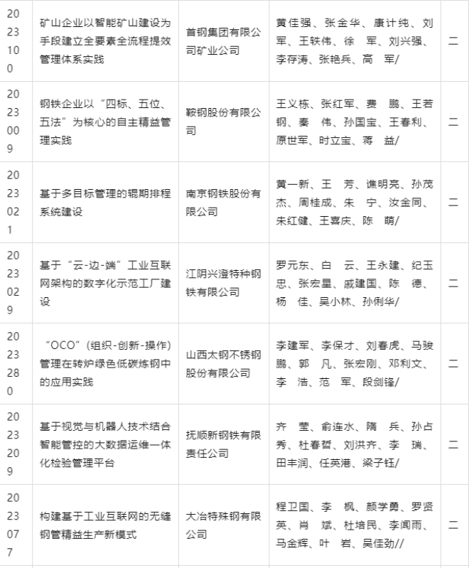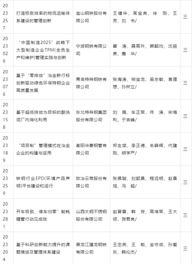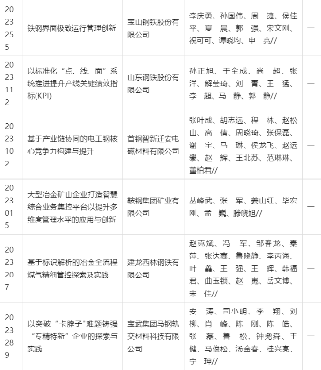 公示 | 第二十一屆(2023年)冶金企業管理現代化創新成果專業審定推薦獲獎成果