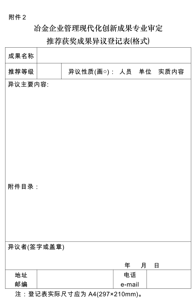 異議登記表連同有關材料電子版和紙件,於2023年10月20日前報送至中國鋼鐵工業協會成果獎評處。逾期的異議一般不予受理。