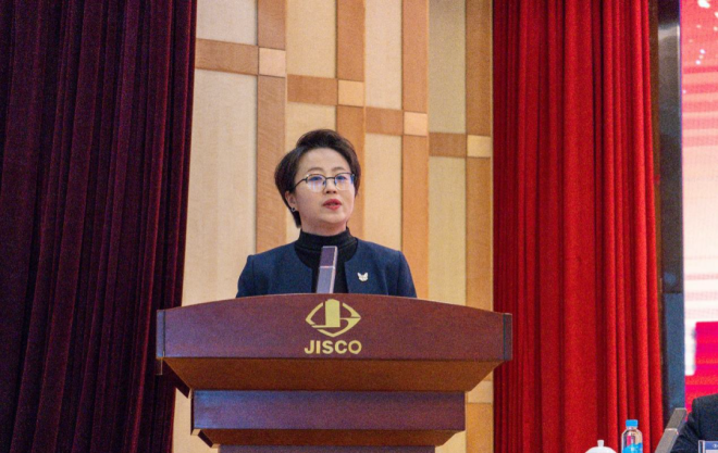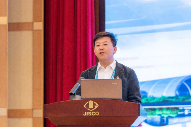 圖為李夢岩代表下一屆年會承辦單位(南鋼)作表態發言