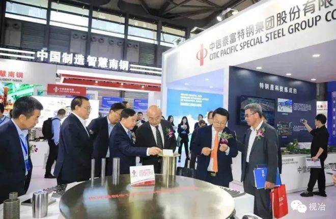 參加開幕式的領導和嘉賓參觀中信泰富特鋼展台