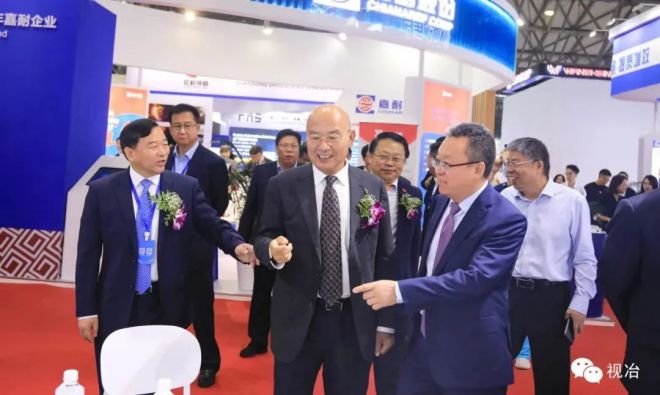 參加開幕式的領導和嘉賓參觀嘉耐股份展台