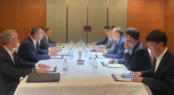 趙民革分別與達涅利首席執行官賈科莫·達涅利、韓國現代製鐵社長安東一開展交流