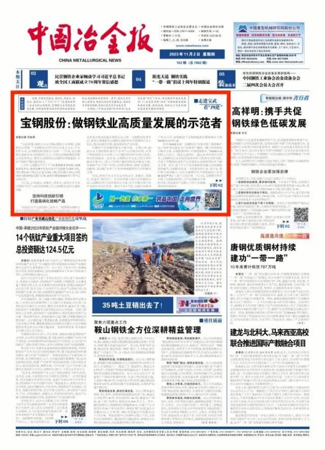 2023年,寶鋼股份還聚焦建築、橋梁、交通、物流和能源等領域的50餘個子行業,形成了一套全流程貫穿性技術,不斷推動產品高端化升級。截至目前,寶鋼股份已向最終用戶提供綜合材料解決方案55項,實現差異化高端產品銷量158萬噸;創建了BeKIND建築用鋼、DreamECO商用車用鋼等凸顯寶鋼股份特色的解決方案品牌。