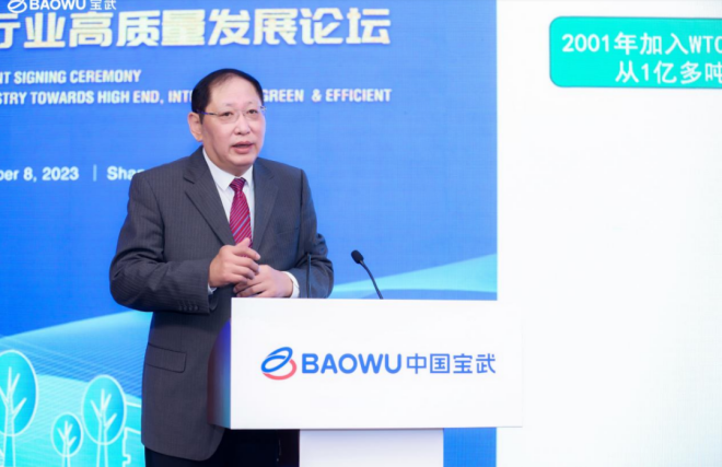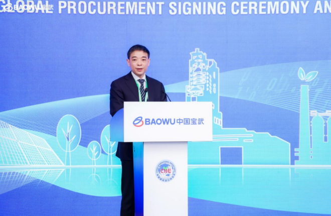 11月8日,中國寶武在第六屆進博會上舉辦主題為“新工業 新動能 麵向新未來”的集中采購簽約儀式暨“四化”引領推動鋼鐵行業高質量發展論壇。寶武黨委常委、副總經理王繼明出席活動並致辭。中國鋼鐵工業協會副秘書長石洪衛應邀做題為《中國鋼鐵行業運行概述》的主題演講。
