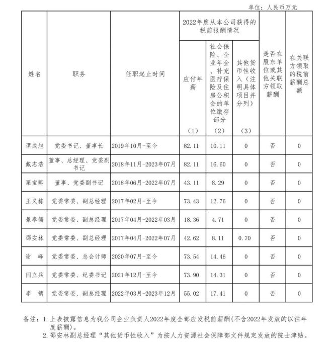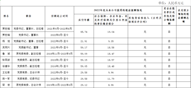 備注:上表披露信息為該公司企業負責人2022年度全部應發稅前薪酬(不含2022年發放的以往年度薪酬)。