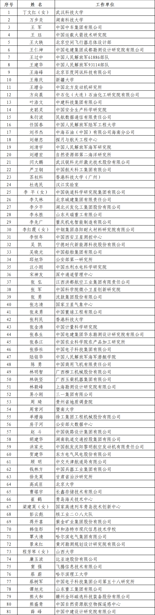 一、國家卓越工程師(81人)