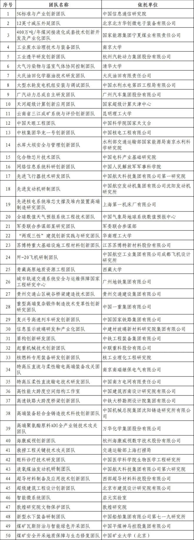 二、國家卓越工程師團隊(50個)