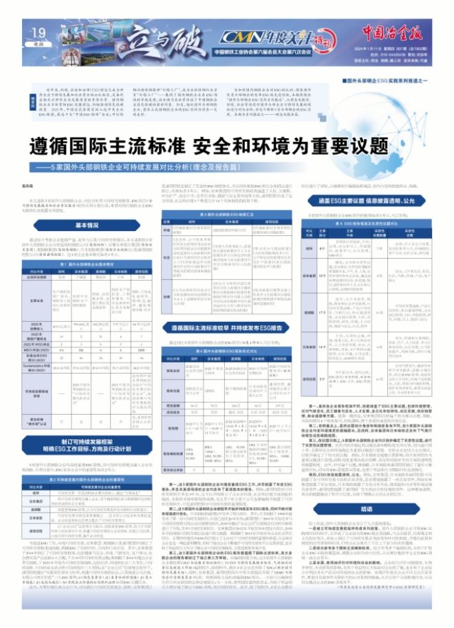 遵循國際主流標準 安全和環境為重要議題——5家國外頭部鋼鐵企業可持續發展對比分析(理念及報告篇)