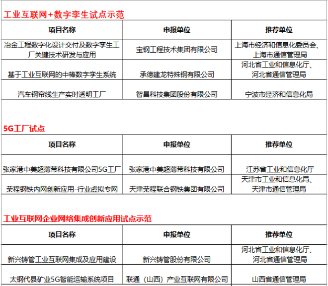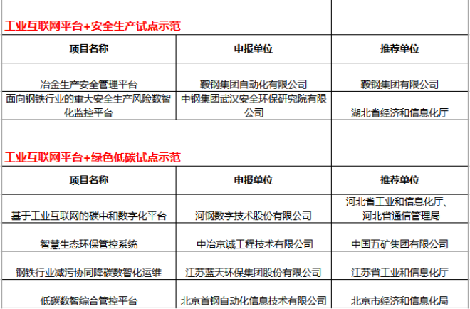 鋼鐵行業多個工業互聯網項目入選國家級試點示範名單