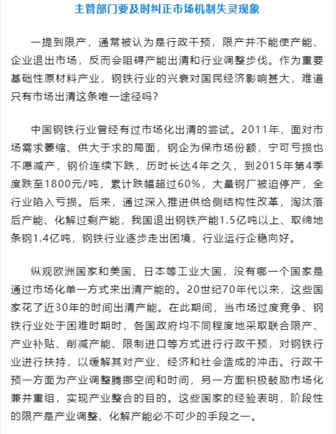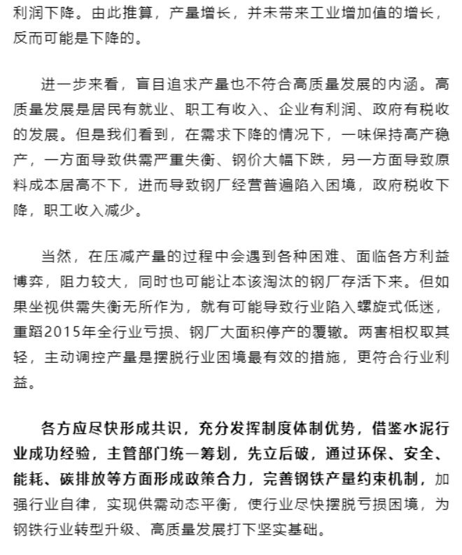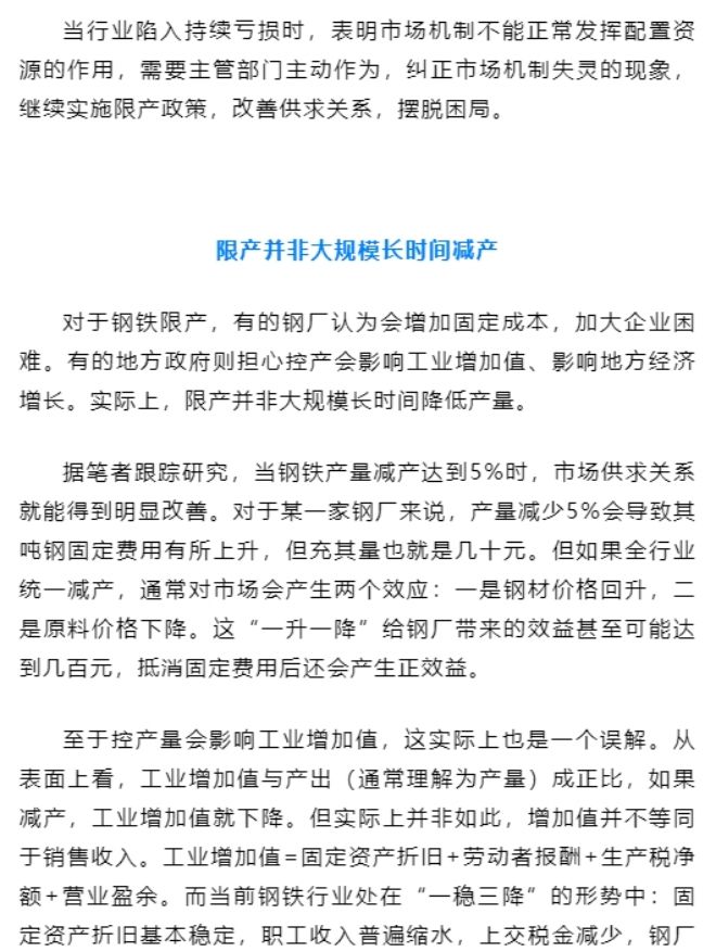 完善鋼鐵產量約束機製才是脫困之道