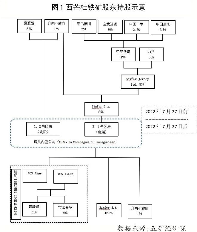 自1996年力拓集團首次向幾內亞政府提交申請以尋求獲得西芒杜鐵礦石項目的采礦權算起,曆經27年後,西芒杜鐵礦項目終於在2023年得到實質性推進。2023年9月5日,贏聯盟控股公司和中國寶武旗下寶武資源有限公司在北京舉行西芒杜鐵礦1號、2號區塊投資合作協議簽約儀式。新協議確立了贏聯盟與中國寶武鋼鐵集團的戰略合作夥伴關係,也標誌著中國寶武全麵獲得西芒杜鐵礦4個區塊的參與權,正式“入局”西芒杜鐵礦。從西芒杜鐵礦的股權結構上看,中國企業已經實際控製了西芒杜鐵礦礦權,而中國寶武通過與多方的合作,目前對西芒杜CTG公司(跨幾內亞公司)的實際持股比例接近1/4(24.4%)。據市場最新消息稱,目前項目正整體努力推進中,預計2025年末第一批產品可運回中國。