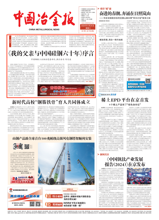 我深信,《我的父親與中國矽鋼六十年》一(yi)書(shu)的(de)出(chu)版(ban)將(jiang)受(shou)到(dao)矽(gui)鋼(gang)產(chan)業(ye)的(de)廣(guang)泛(fan)認(ren)可(ke)和(he)歡(huan)迎(ying),這(zhe)本(ben)書(shu)將(jiang)為(wei)我(wo)們(men)全(quan)麵(mian)總(zong)結(jie)中(zhong)國(guo)冷(leng)軋(zha)矽(gui)鋼(gang)的(de)發(fa)展(zhan)史(shi)提(ti)供(gong)寶(bao)貴(gui)經(jing)驗(yan),發(fa)揮(hui)一(yi)定(ding)的(de)借(jie)鑒(jian)及(ji)幫(bang)助(zhu)作(zuo)用(yong)。同(tong)時(shi),我(wo)也(ye)對(dui)未(wei)來(lai)中(zhong)國(guo)矽(gui)鋼(gang)產(chan)業(ye)的(de)發(fa)展(zhan)充(chong)滿(man)期(qi)待(dai)。我(wo)相(xiang)信(xin),將(jiang)有(you)越(yue)來(lai)越(yue)多(duo)的(de)技(ji)術(shu)專(zhuan)家(jia)在(zai)冷(leng)軋(zha)矽(gui)鋼(gang)領(ling)域(yu)繼(ji)續(xu)努(nu)力(li)探(tan)索(suo),並(bing)以(yi)百(bai)折(zhe)不(bu)撓(nao)、奮發有為的精神,引領著矽鋼產業朝著高端化、智能化、綠色化發展目標邁進。