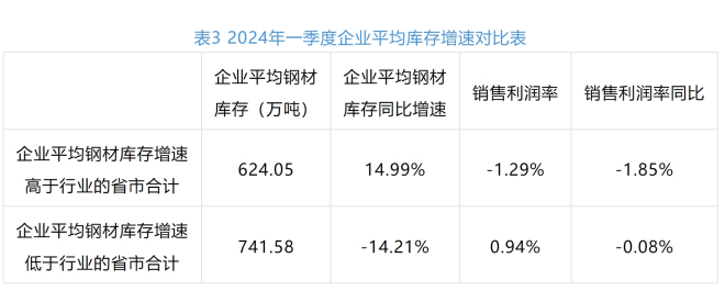 從一季度企業平均鋼材庫存增速情況看(見表3),企業平均鋼材庫存增速高於全國的省市,銷售利潤率更低,銷售利潤率下降速度更快。