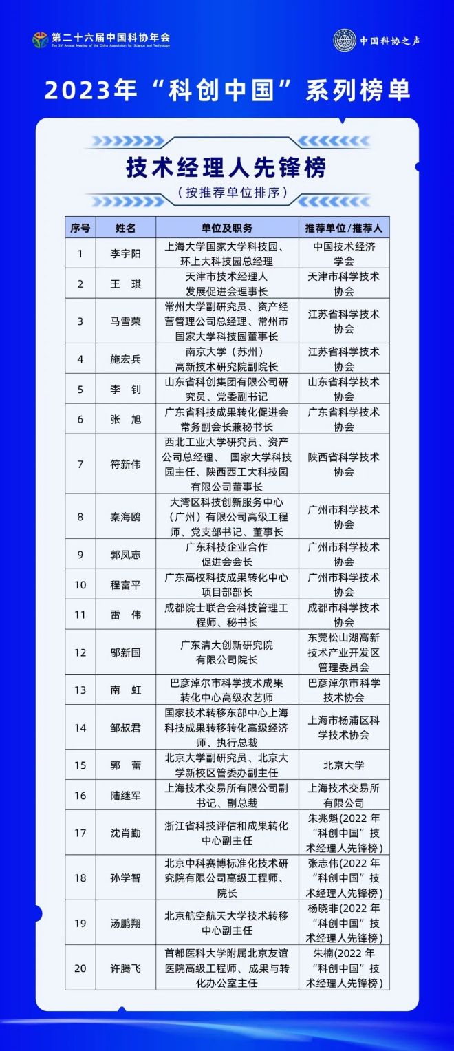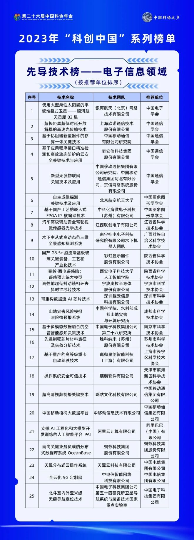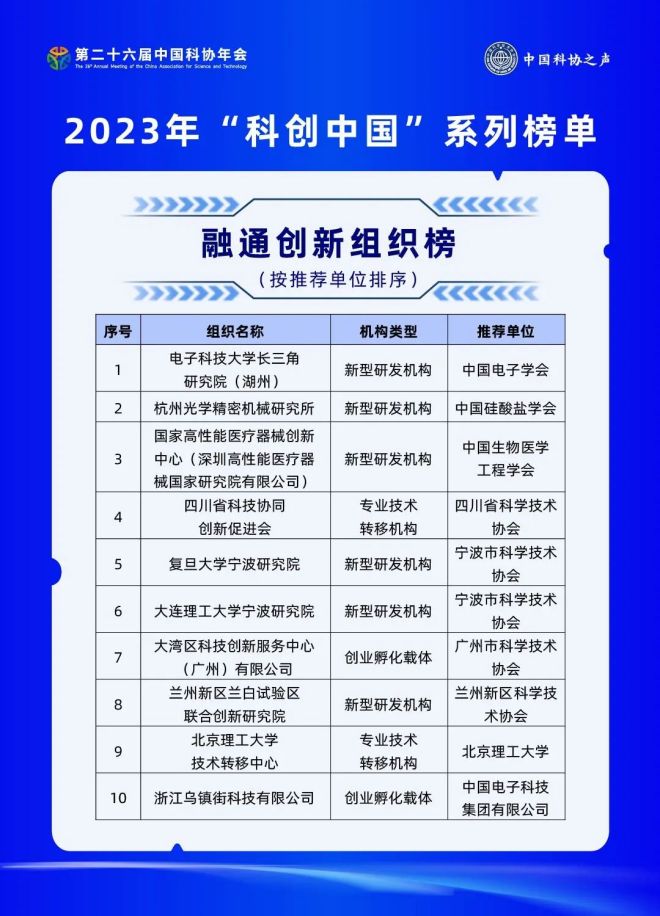 第二十六屆中國科協年會上,中國科協正式發布2023年“科創中國”係列榜單。