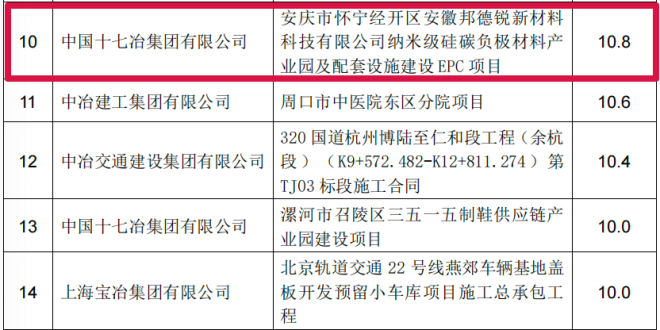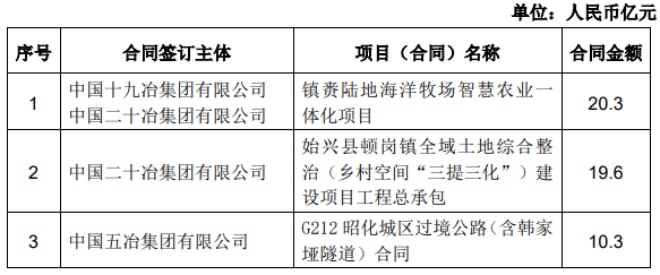 8月份,中國冶金科工股份有限公司部分新簽單筆合同額在人民幣10億元以上的重大工程承包合同如下——