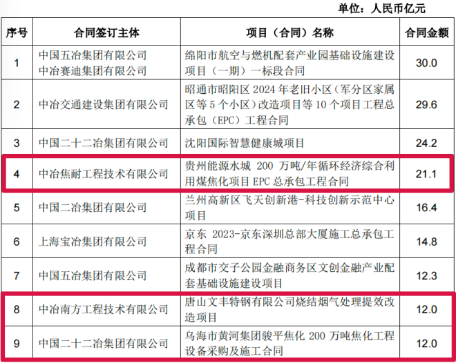 中國中冶2024年1-8月新簽合同額人民幣8310.5億元