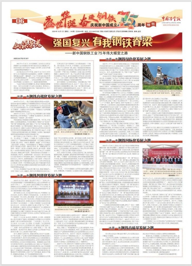 我們堅信,在強國建設、民族複興的偉大征程中,中國鋼鐵工業高質量發展之路將越走越快!(本版照片源自本報資料庫)