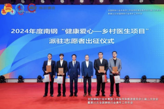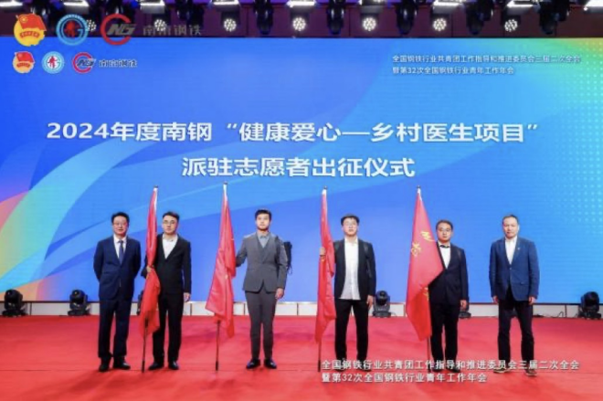 開幕式現場還舉行了2024年度南鋼“健康愛心—鄉村醫生項目”派駐誌願者出征儀式,南鋼第七批“星光合夥人”駐點隊員接過隊旗。自2018年以來,在國家衛健委鄉村振興辦等部門的指導下,在複星基金會的大力支持下,南鋼積極推進鄉村醫生項目的開展,連續7年派出33位青年參與到基層鄉村的健康振興工作當中,至今已幫扶貴州習水縣、安徽金寨縣、山西大寧縣、寧夏紅寺堡縣、新疆吉木乃縣、江西樂安縣、江西廣昌縣、江西於都縣等15個偏遠地區。