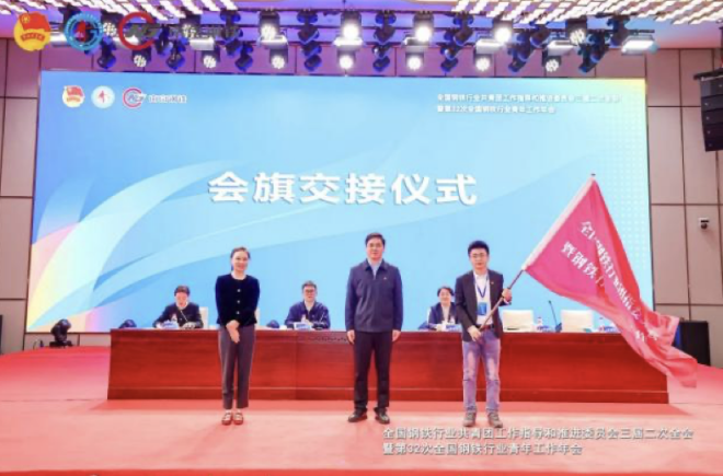 李夢岩代表全體參會人員作了大會總結。隨後,李夢岩、李磊磊、畢魯博共同完成了會旗交接儀式。畢魯博代表下一屆全國鋼鐵行業青年工作年會承辦單位進行了表態發言。