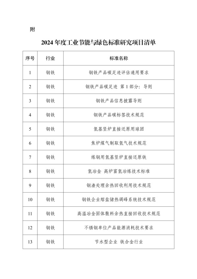 工信部公示2024年度工業節能與綠色標準研究項目,含鋼鐵行業14項