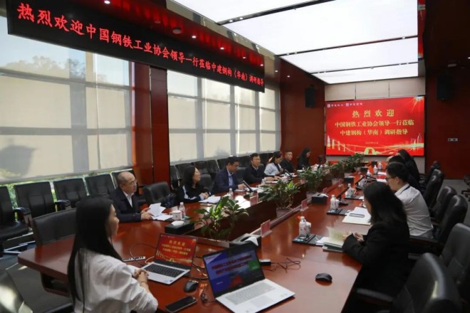 中建鋼構綜合辦公室/黨建工作部、商務管理部、科技與設計管理部、戰略與IT管理部相關負責人,以及鋼協規劃發展部、鋼鐵材料應用推廣中心,貿促會冶金行業分會,中國冶金報社,中建戰略研究院有關同誌參加調研。