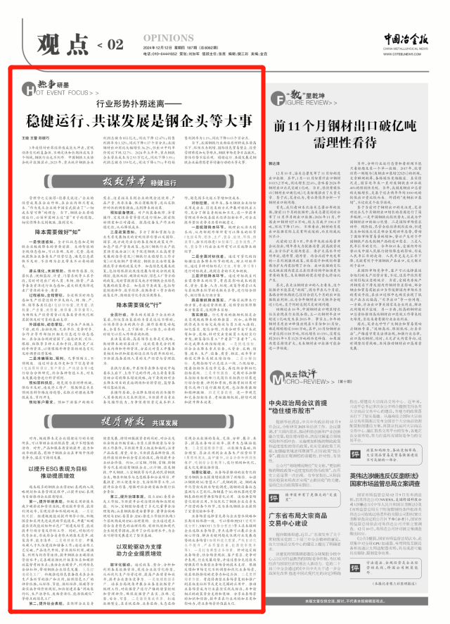 穩健運行、共謀發展是鋼企頭等大事