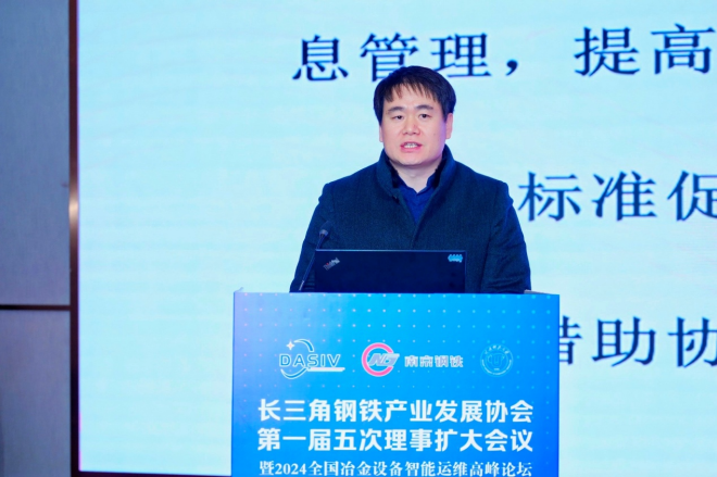 12月21日,由長三角鋼鐵產業發展協會(以下簡稱長三角鋼協)、南京鋼鐵股份有限公司、太原科技大學主辦,華為技術有限公司、斯派超科技、中冶賽迪信息技術(重慶)有限公司、合肥市勇安建設工程有限公司、南京工業大學協辦的長三角鋼協第一屆五次理事擴大會議暨2024全國冶金設備智能運維高峰論壇在江蘇南京召開。