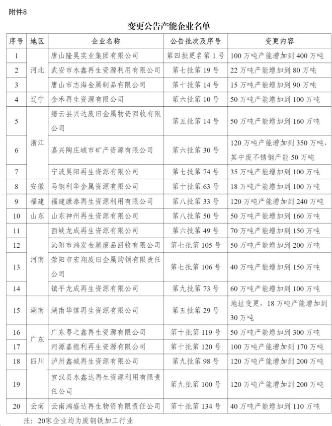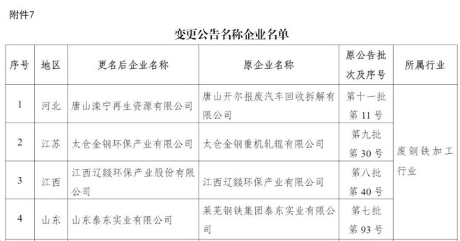 12月19日,工業和信息化部發布公告,根據《廢鋼鐵加工行業準入條件》等規範條件及相關公告管理辦法規定,經專家審核、現場核查及網上公示等程序,現將符合《廢鋼鐵加工行業準入條件》企業名單(第十二批)、符合《機電產品再製造行業規範條件》企業名單(第一批)等,以及變更、撤銷相關行業規範公告的企業名單予以公告。