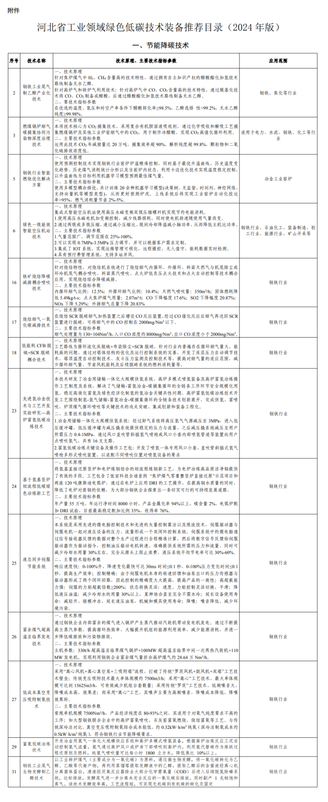 河北省工業領域綠色低碳技術裝備推薦目錄(2024年版)公布,這些鋼鐵相關技術入選