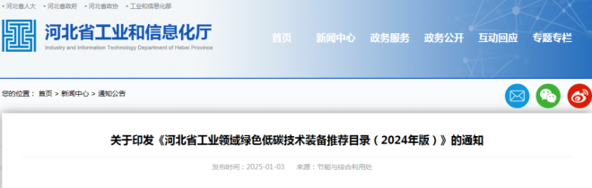 1月3日,河北省工業和信息化廳發布了關於印發《河北省工業領域綠色低碳技術裝備推薦目錄(2024年版)》的通知,通知中公布了河北省工業領域綠色低碳技術裝備推薦目錄(2024年版)。