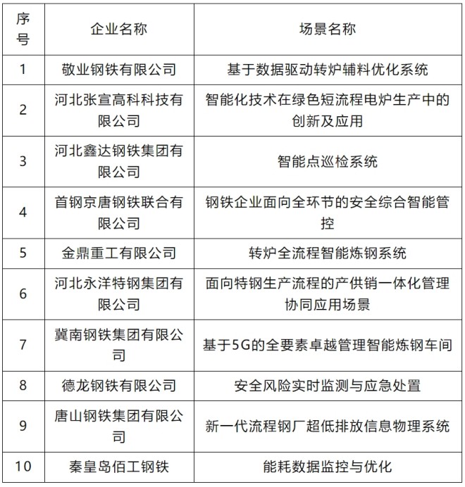 首批河北省鋼鐵行業數字化轉型優秀應用場景名單