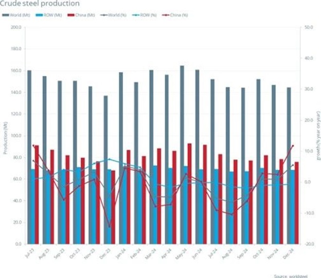 2024年12月及全年全球粗鋼產量