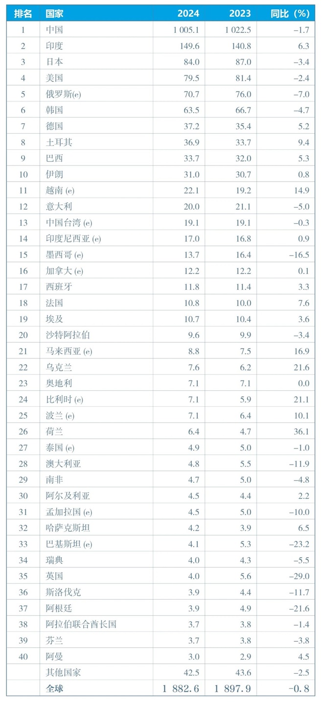 表3:2024年全年全球粗鋼產量
