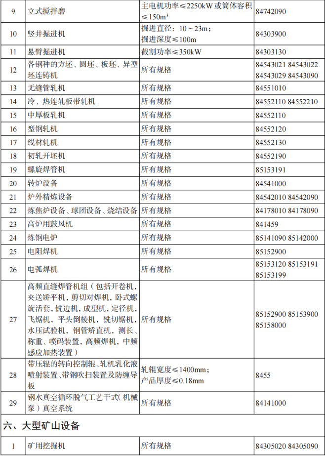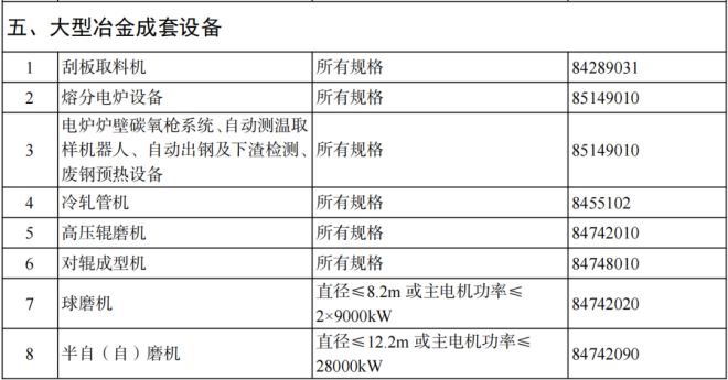 涉及冶金裝備!五部門調整重大技術裝備進口稅收政策有關目錄