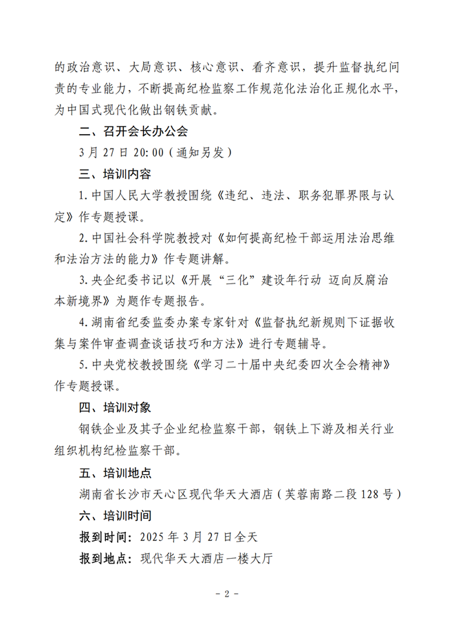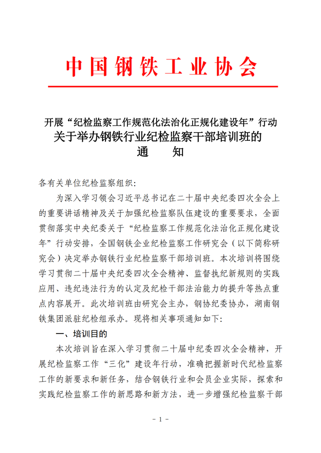 關於舉辦鋼鐵行業紀檢監察幹部培訓班的通知