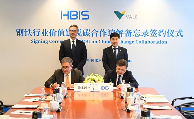 3月20日,河鋼與淡水河穀在北京簽署鋼鐵行業價值鏈脫碳合作諒解備忘錄,這是雙方落實2024年11月習近平主席對巴西進行國事訪問期間,中巴政府簽署的《關於開展礦業可持續發展合作的諒解備忘錄》的(de)務(wu)實(shi)行(xing)動(dong),將(jiang)進(jin)一(yi)步(bu)深(shen)化(hua)在(zai)脫(tuo)碳(tan)領(ling)域(yu)的(de)合(he)作(zuo),共(gong)同(tong)推(tui)動(dong)鋼(gang)鐵(tie)行(xing)業(ye)綠(lv)色(se)低(di)碳(tan)發(fa)展(zhan)。河(he)鋼(gang)集(ji)團(tuan)董(dong)事(shi)長(chang)劉(liu)鍵(jian)與(yu)淡(dan)水(shui)河(he)穀(gu)首(shou)席(xi)執(zhi)行(xing)官(guan)畢(bi)聞(wen)達(da)進(jin)行(xing)座(zuo)談(tan)交(jiao)流(liu),並(bing)見(jian)證(zheng)簽(qian)約(yue)。