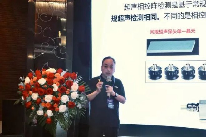 在技術交流環節,張瑛做《倉信無損檢測 專注無損檢測25年》主題報告;清華大學無損檢測中心主任、博導韓讚東副教授做《金屬管棒電磁檢測技術研究進展與應用》主題報告;鋼研納克無損檢測事業部總經理張建衛做《超聲相控陣檢測技術及在棒線材檢測中的應用》主題報告;上海倉信專家王品華做《開發國產交流漏磁探傷裝置的線路圖及成效》主題報告;興澄特鋼無損檢測專家吳朔陽做《倉信探傷設備在興澄特鋼的應用評估與技術發展》主題報告;上海知泓實業有限公司董事長馬雅紅做企業推介,副總經理鄧景珊做《核工業無損檢測技術與設備》主題報告;撫順特鋼無損檢測專家綦曉冬做《撫順特鋼無損檢測工作的發展及備件國產化替代進口工作的現狀分析》主題報告;上海倉信專家劉誌琴做《無損檢測設備/備件的國產化之路》主題報告;武漢中科創新技術股份有限公司總監左義鋒做《超聲無損檢測設備及國產化替代應用實踐》主題報告。
