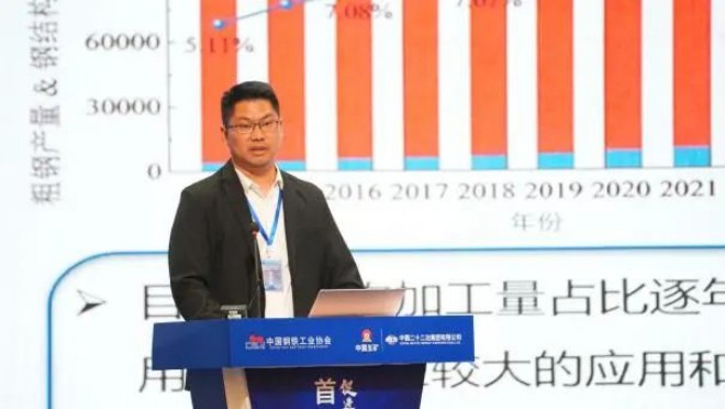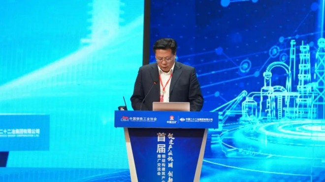 圖為首鋼建設郭中華《首鋼鋼結構建築產業鏈創新成果》
