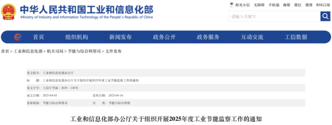 工業和信息化部辦公廳關於組織開展2025年度工業節能監察工作的通知