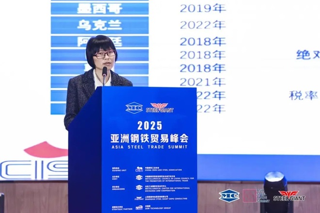 蔣璿芳介紹了中國鋼鐵市場與進出口情況。她分析指出,亞非市場是全球最大的鋼鐵市場,占全球粗鋼產量的78%,消費量的76%。在貿易政策不斷變化的大背景下,亞非市場的穩定對全球鋼鐵貿易非常重要。2024年,我國鋼材出口前十大目的國中有9個在亞洲,向亞洲出口鋼材7528萬噸,占出口總量的68%。2024年國外對中國鋼鐵產品新發起的貿易救濟調查達33起,部分將於2025年裁決,對中國鋼材出口有一定影響。2025年美國對鋼鋁關稅進行政策調整,對主要貿易夥伴加征“對等關稅”,將影響全球鋼鐵貿易,部分受影響的國家可能采取措施保護本國產業,從而進一步影響全球鋼鐵貿易環境。