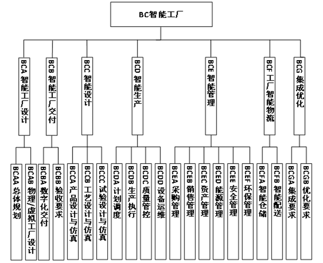 主要包括智能工廠設計、智能工廠交付、智能設計、智能生產、智能管理、工廠智能物流、集成優化等7個部分,如圖7所示。主要規定智能工廠設計與交付,智能工廠運營時的設計、生產、管理、物流、係統集成等內容。