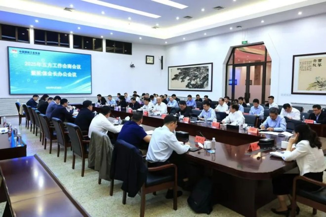 為充分發揮跨部門溝通協商工作機製作用,4月28日,中國鋼鐵工業協會在京組織召開2025年五方工作會商會議暨輪值會長辦公會議,國家有關部委司局領導、各輪值會長單位主要負責人以及協會駐會領導參加會議。會議由鋼協會長,首鋼集團黨委書記、董事長趙民革主持,鋼協黨委書記、執行會長何文波做總結講話。