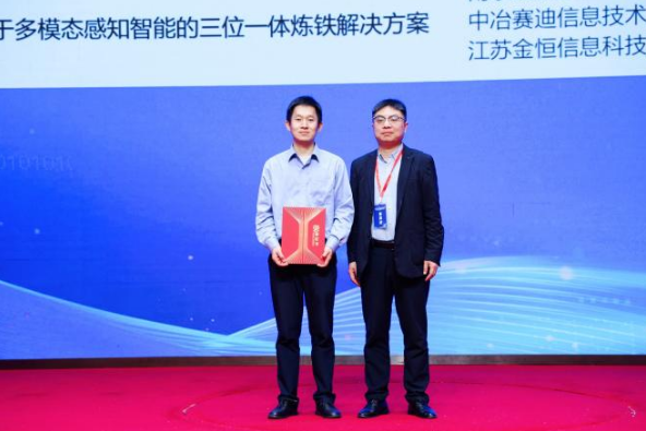 南鋼股份煉鐵事業部技術處數字化應用室主任劉永輝做《基於多模態感知智能的三位一體煉鐵解決方案》項目分享