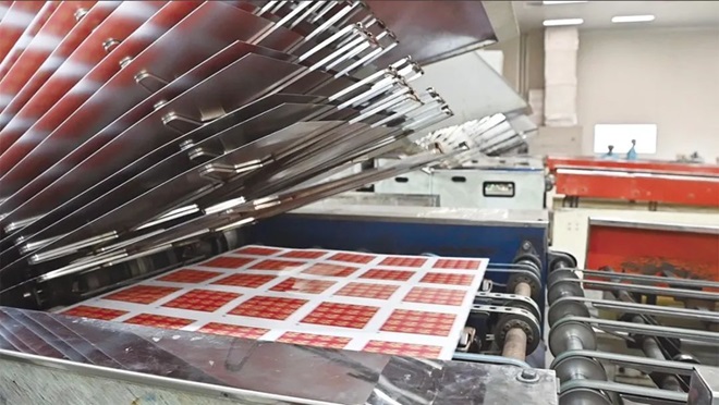 2024年1月15日,廣東東莞的“蟬翼鋼”製龍年生肖郵票的印刷現場,這裏正進行著彩印的最後一道工序——塗保護油。“這版印刷的油墨有些不均勻,是不是底板位置偏移了?”來自首鋼京唐的研發人員拿著新鮮“出爐”的鋼製郵票,將樣品的圖案、顏色、大小同設計參數反複比對,協助該印刷廠解決了重影、油墨不均等問題,確保用“蟬翼鋼”製作的龍年生肖郵票如期發行。