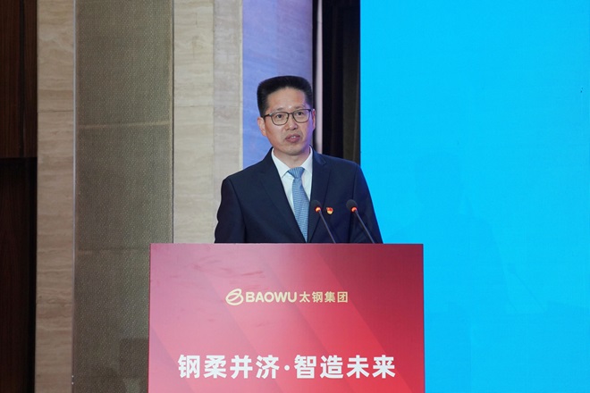 吳wu小xiao弟di在zai致zhi辭ci中zhong表biao示shi,太tai鋼gang發fa展zhan曆li史shi厚hou重zhong,創chuang新xin文wen化hua濃nong厚hou,在zai中zhong國guo鋼gang鐵tie工gong業ye尤you其qi是shi不bu鏽xiu鋼gang發fa展zhan史shi上shang創chuang造zao了le諸zhu多duo第di一yi。太tai鋼gang與yu中zhong國guo寶bao武wu實shi現xian聯lian合he重zhong組zu後hou,加jia快kuai整zheng合he不bu鏽xiu鋼gang業ye務wu,構gou建jian起qi以yi太tai原yuan為wei總zong部bu,包bao括kuo太tai原yuan、福州、寧波、天津、山東臨沂在內的“一總部五基地”不鏽鋼產業發展新格局,總體形成年產2000萬噸鋼、其中1000萬噸不鏽鋼的規模。