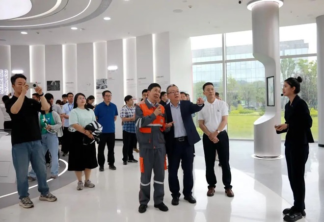圖為參會人員現場參觀華菱安賽樂米塔爾汽車板公司展廳。