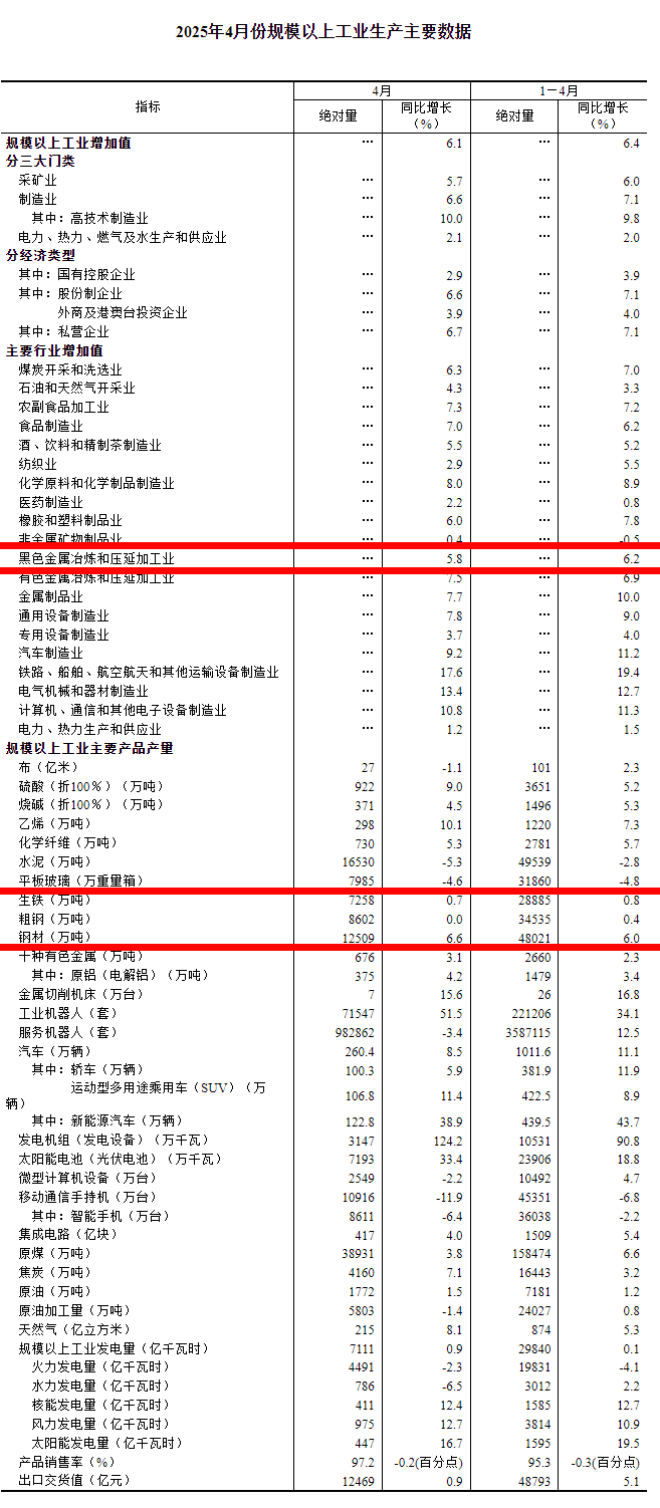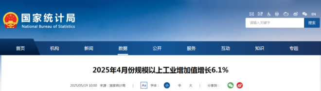 5月19日,國家統計局發布了文章,公布了2025年4月份規模以上工業生產主要數據。