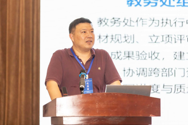 北京科技大學教務處副處長宋洪慶做了《深耕與遠航:北京科技大學教材建設管理與工程流體力學英文教材出海分享》特邀發言。